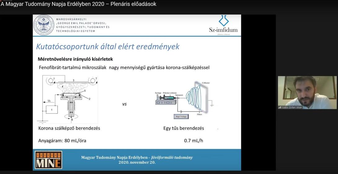 12.30 Szabó Zoltán István (egyetemi adjunktus, „George Emil Palade" Orvosi, Gyógyszerészeti, Tudomány és Technológiai Egyetem, Marosvásárhely): Nanoszálas rendszerek gyógyászati alkalmazásának lehetőségei