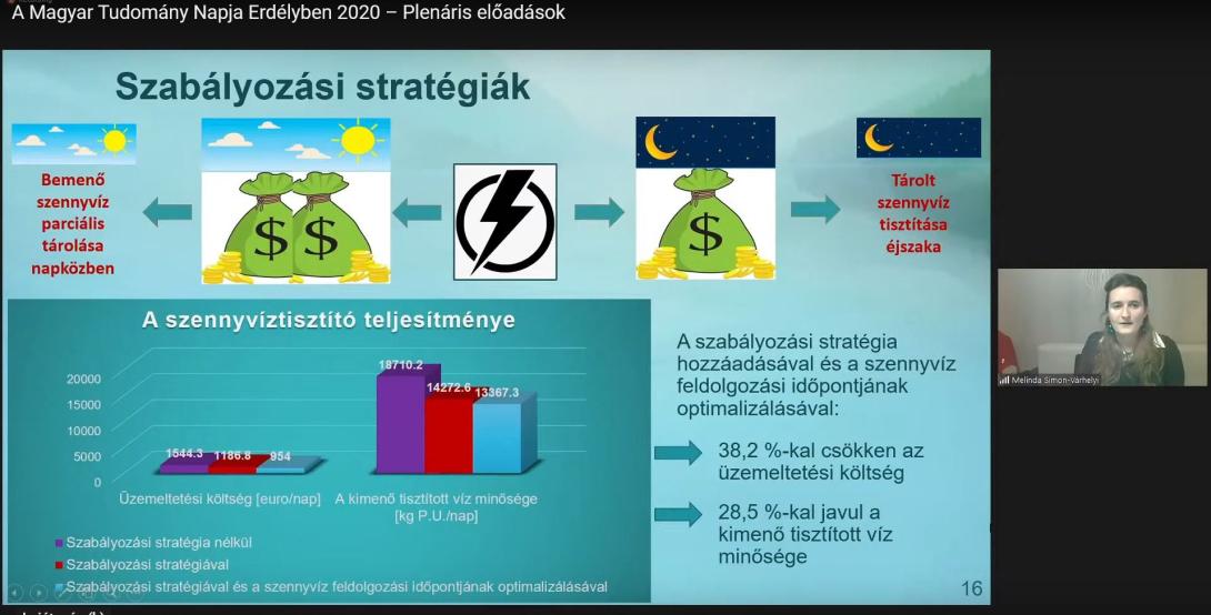 13.30 Simon-Várhelyi Melinda (doktorandusz, vegyészmérnök, BBTE, Kémia és Vegyészmérnöki Kar, Kolozsvár): Szabályozási stratégiák a szennyvíztisztító telep teljesítményének javítására