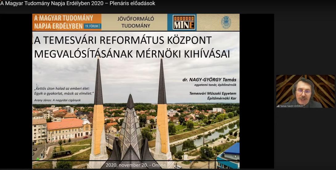 13.50 Nagy-György Tamás (egyetemi tanár, Temesvári Műszaki Egyetem, Építőmérnöki Kar, Temesvár): A Temesvári Református Központ megvalósításának mérnöki kihívásai
