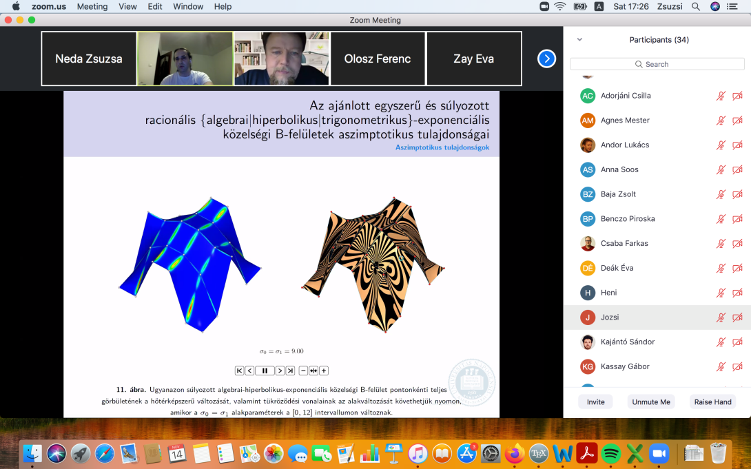11. A MATEMATIKAI ÉS INFORMATIKAI SZAKOSZTÁLY november 13–14 között szervezte meg a 11. Matematika és informatika alkalmazásokkal videókonferenciát. A rendezvény első napján a matematika szekcióban 8 előadás hangzott el. Ezt követően szombaton a didaktika, illetve informatika szekciók előadásai következtek. Délután plenáris előadással folytatódott a rendezvén, ahol Solymosi Tamás (a Budapesti Corvinus Egyetem professzora) A kooperatív játékok magjának leírásáról című előadását hallgathatták meg a résztvevők. A plenáris előadás után további 5 előadás hangzott el a matematika szekcióban. Végül a konferencia legünnepélyesebb pillanata következett, a Farkas Gyula-emlékérem átadása. Az emlékérmet olyan általános iskolában, vagy középiskolában oktató matematika vagy informatika szakos tanár kaphatja, aki tevékenységével jelentősen hozzájárult a matematikai vagy informatikai ismeretek terjesztéséhez, és a tehetséggondozásban kiemelkedő eredményeket ért el. Az idei díjazottak: Bencző Piroska (Gyergyóalfalu), Deák Éva (Sepsiszentgyörgy) és Păcurar Mária (Temesvár). A laudációkat Szenkovits Ferenc és Soós Anna olvasta fel. A díjakat András Szilárd adta át. A konferencián összesen 22 előadás hangzott el és 61 regisztrált résztvevője volt a rendezvénynek.