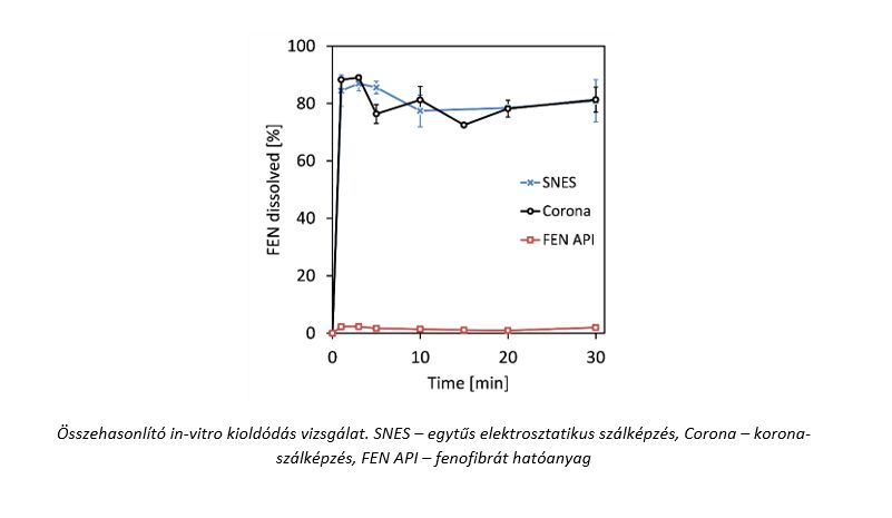 A fenofibrát olyan hatóanyag, amelyet a magas vérzsírszint csökkentésére használják. Olyan diszlipidémiás betegségek kezelésére alkalmas, amelyeknél a különböző zsírok (koleszterol, trigliceridek) magas koncentrációja a vérben érszűkülethez, valamint szív- és érrendszeri megbetegedésekhez vezethet. A fenofibrát tartalmú gyógyszerek gyártásának azonban az a nehézsége, hogy ez a hatóanyag alig oldódik vízben. Az egyik hatékony megoldás erre az elektrosztatikus szálképzés, amelynek során egy nagyfeszültségű áram alá helyezett, vékony tűn keresztül polimer oldatot áramoltatnak át, míg a tű tengelyére merőlegesen egy elektromosan vezető kollektorlemezt helyeznek, amelyet egyenpotenciálra kapcsolnak. A mikro/nanoszálakat a nagyfeszültség által keletkező elektrosztatikus erők hozzák létre, a keletkezett szálpaplan pedig megnövelheti a beágyazott hatóanyag oldhatóságát, illetve kioldódási sebességét. Az egytűs berendezéssel azonban csak igen kismennyiségű készítményt lehet előállítani.