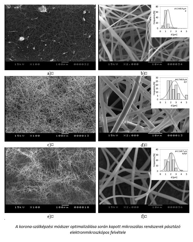 Egy friss tanulmány, amely négy intézmény kutatóinak együttműködéséből jött létre (Sapientia Erdélyi Magyar Tudományegyetem, Erdélyi Múzeum-Egyesület, Marosvásárhelyi "George Emil Palade" Orvosi, Gyógyszerészeti, Tudomány és Technológiai Egyetem, Budapesti Műszaki és Gazdaságtudományi Egyetem) a Magyar Tudományos Akadémia Domus-csoportos kutatási pályázata révén ezeket az akadályokat igyekszik elhárítani, egy új eljárással, amihez új kísérleti berendezést terveztek és építettek. A korona-szálképzésnek nevezett eljárás tűk helyett egy forgó berendezést alkalmaz, amelyből egyenletesen áramlik ki a polimer oldat.