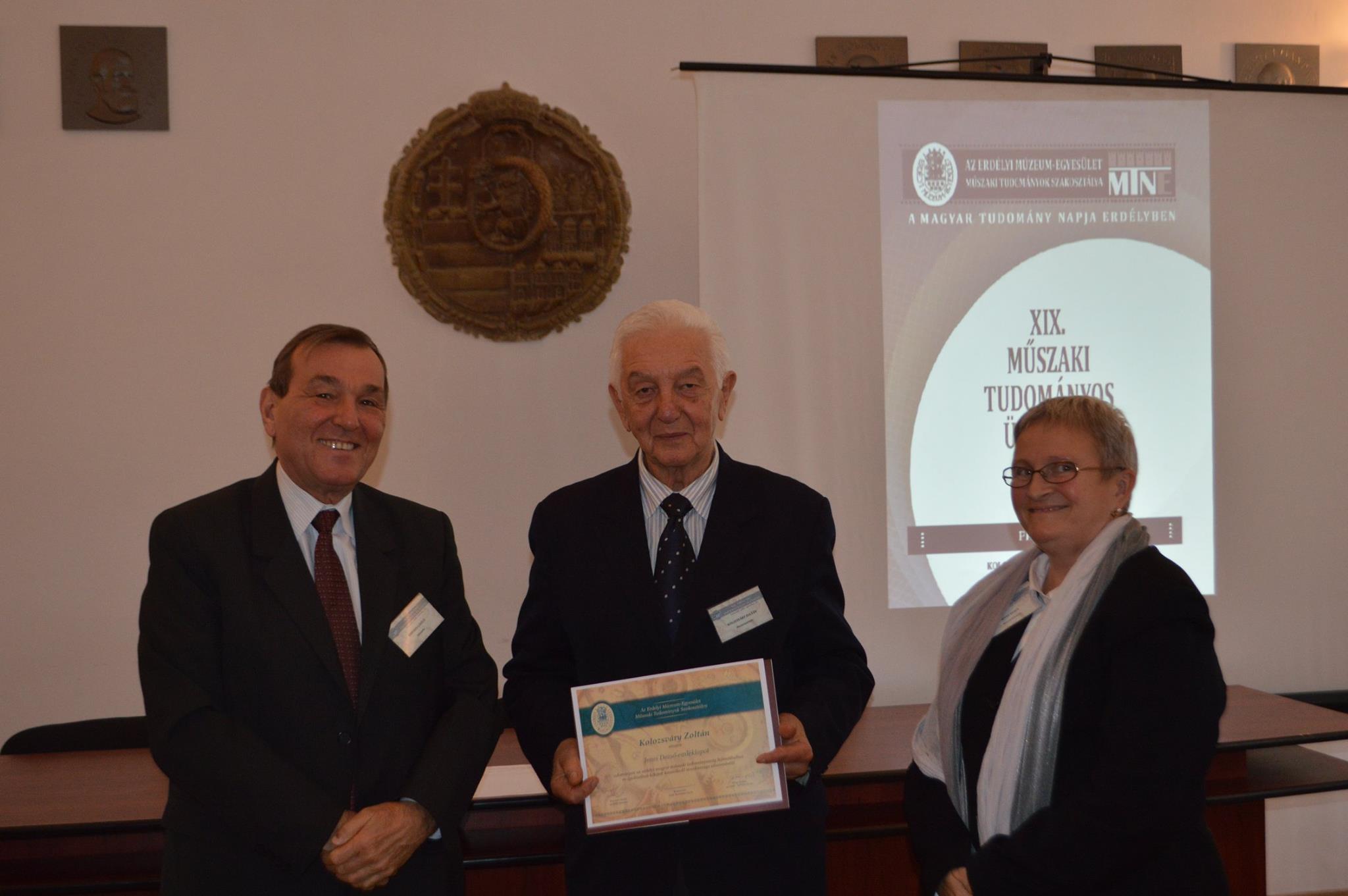 Az emléklapot Bitay Enikő az EME főtitkára, a Műszaki Tudományok Szakosztálya elnöke és Kerekes László, az EME alelnöke nyújtotta át.