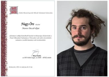 Nagy Örs kiemelkedő kutatási tevékenységeiért Maros Dezső-díjban részesült
