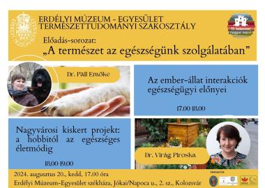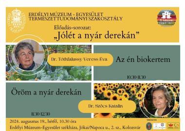 - 2024. május 30. – Dr. Tóthfalussy-Veress Éva: A Kolozsvári Magyar Királyi Ferenc József Tudományegyetem Állattani tanszékének története (1872-1919)