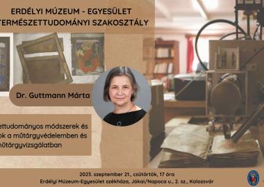 2023. szeptember 28. Dr. Guttmann Márta: Természettudományos módszerek és vizsgálatok a műtárgyvédelemben és műtárgyvizsgálatban
