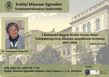 • 2024. május 30. – Dr. Tóthfalussy-Veress Éva: A Kolozsvári Magyar Királyi Ferenc József Tudományegyetem Állattani tanszékének története (1872-1919)